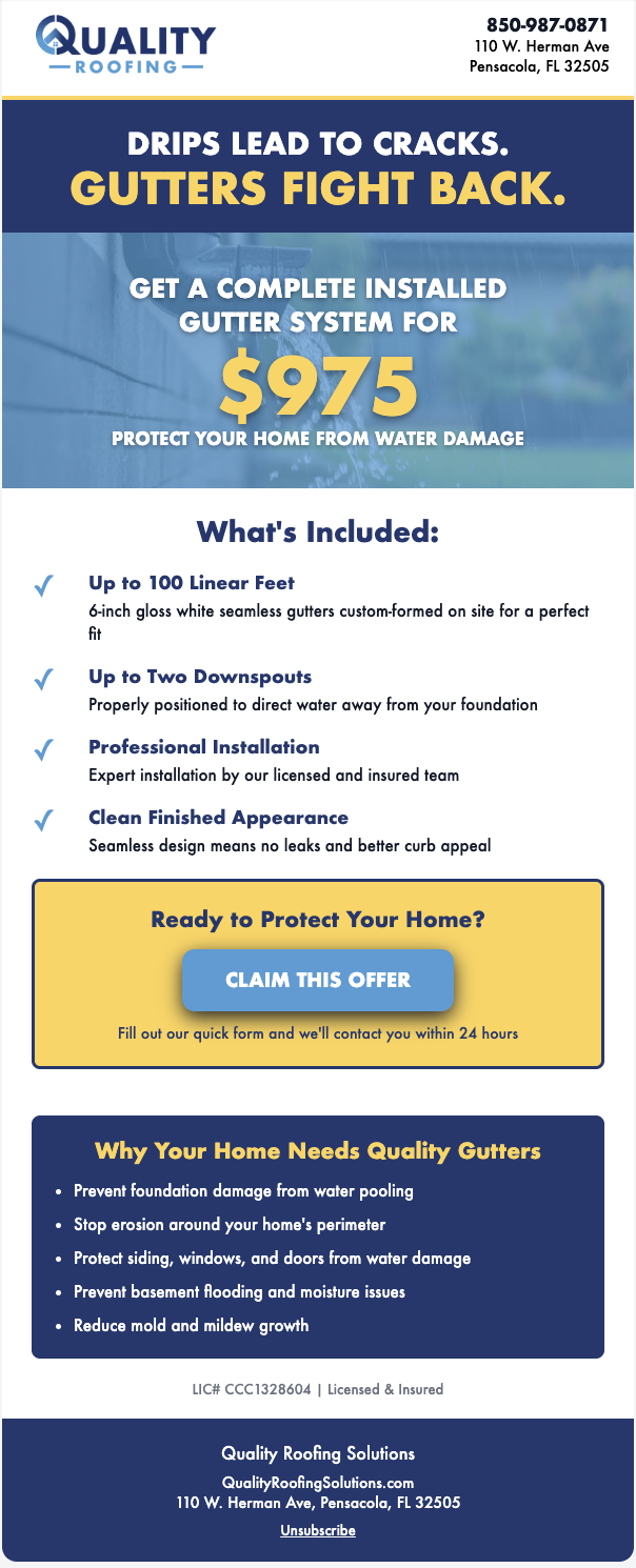 I designed a sales-driven email that balances clarity, visuals, and call-to-action to generate homeowner interest.
